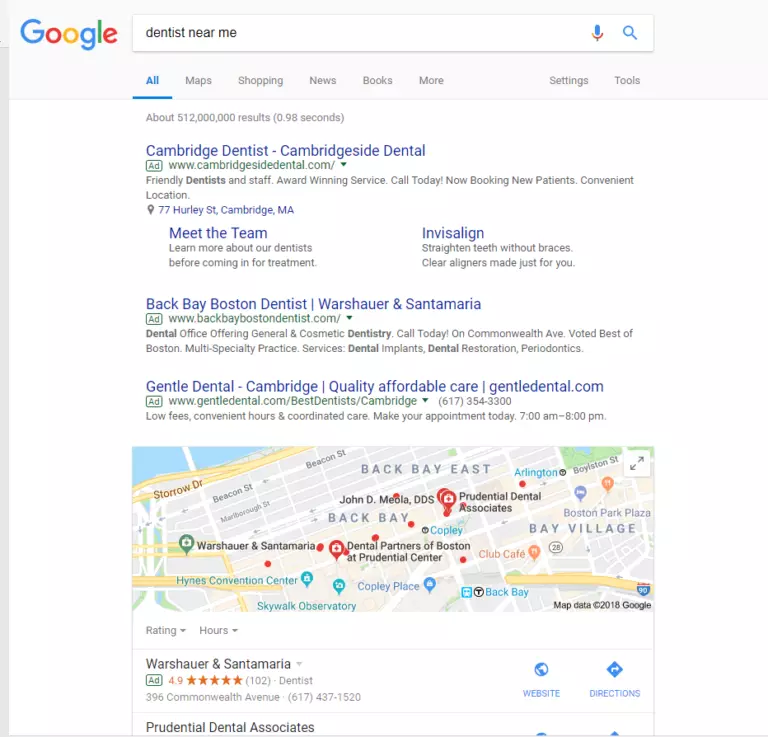 Whilst the second advert has ‘personality’, it does not clearly express local intent. In addition, the location extension also makes a difference (Boston vs. Lynn).