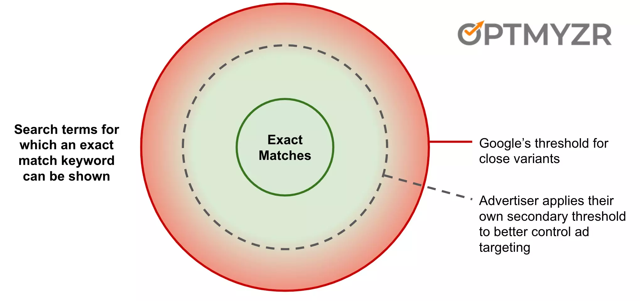 When a user searches for a keyword that is not identical to an advertiser’s keyword, Google’s algorithm calculates a score that indicates the likelihood that the search result “means the same thing,” or how close the search result is to the keyword.
